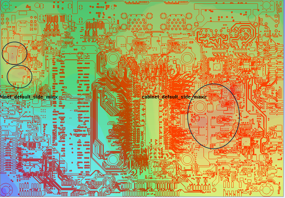 Icepak 的溫度分布圖可以讓EE工程師看到附近的高速訊號線是不是有危險,以及回去看佈線是哪邊需要修正。
