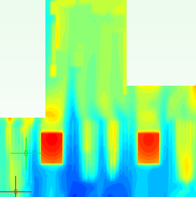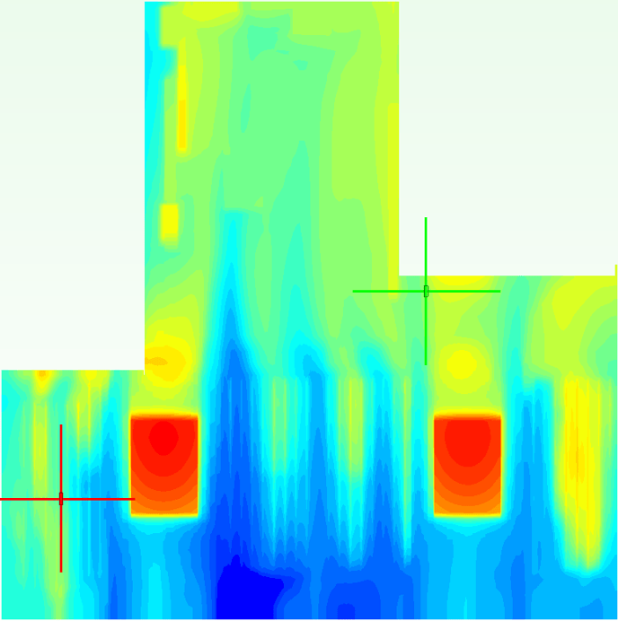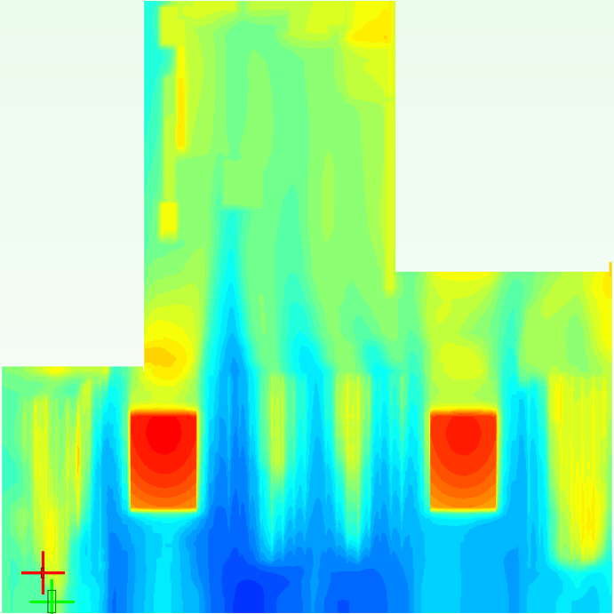 比較兩者溫度分布,可以看到原始的I/O區域受到加熱而溫度較高,在關閉熱源之後這部分的影響就消失了。除此之外,再往前的影響幾乎可以說是沒有。