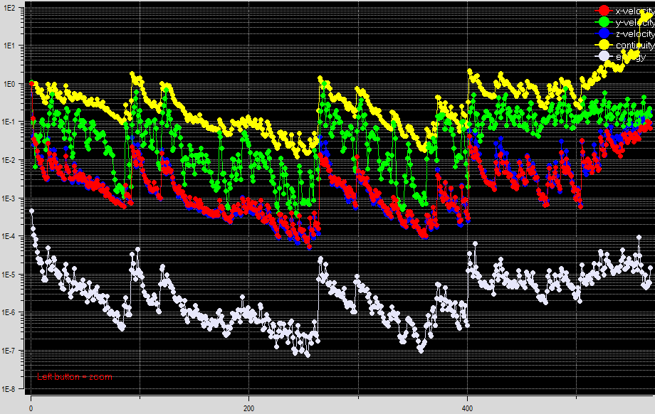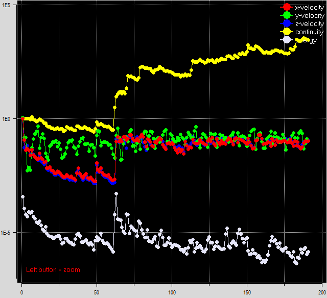 這個狀況其實有一點類似自然對流求解,就是整個流場的解不管哪個分量都很靠近0,因此你隨便走一步都會太大步。在自然對流下,我們可以給一個初猜值,反重力方向0.1m/s加快他找到迭代方向。但是這次沒辦法。你看第一章照片就知道整個房子的流場沒什麼規律性。