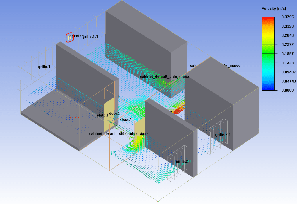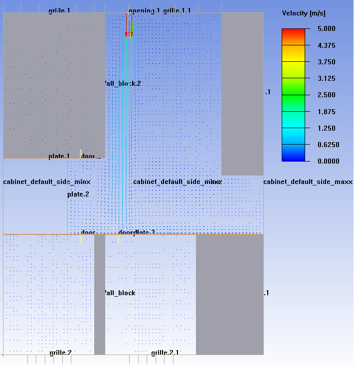 而我們從下一張圖可以發現,整體流場在出了冷氣口之後很快就降到很靠近0了