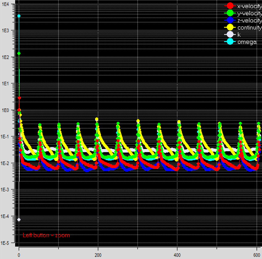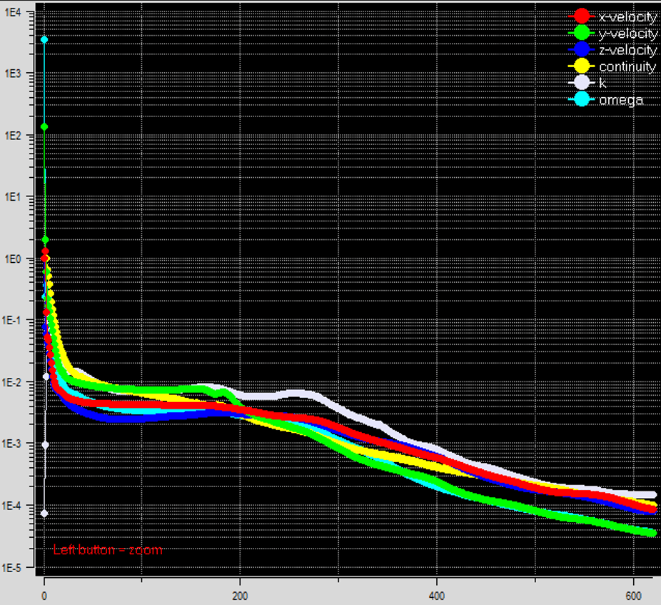 透過觀察殘值曲線可以發現,先往上彈的總是y-velocity,因此最後做法是調低momentum under-relaxation,以下是兩個不同值對應的收斂狀況
