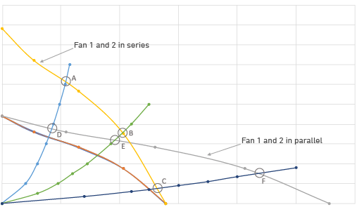 處裡的方法可以把前後級風機用一個等效風機取代,重點是PQ curve需要動點手腳。